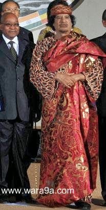 يطل دائماً بشكل يميزه دون عن غيره من رؤساء العرب والعالم، اشتهر بملابسه الصاخبة، والألوان الصارخة والتي يغلب عليها طابع البهرجة، أنه الرئيس الليبي معمر القذافي أحد أغرب الزعماء العرب وأكثرهم إثارة للجدل بسبب تصرفاته وتصريحاته الغريبة وملابسه التي يرتديها.