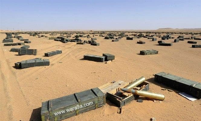 صناديق تحتوي على قذائف دبابات منتشرة في الصحراء جنوب مدينة سرت بالقرب من احد المخابيء لتخزين الأسلحة وقد تم تركها بعد ان تم الإعلان عن قتل القذافي